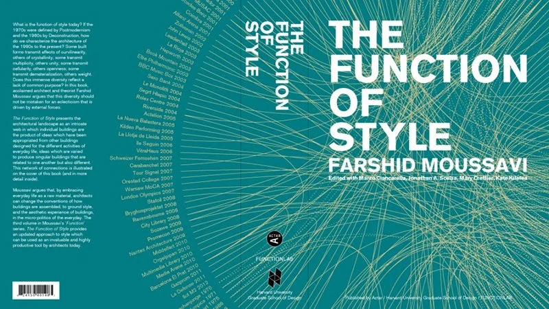 What is the function of style today? If the 1970s were defined by Postmodernism and the 1980s by Deconstruction, how do we characterize the architecture of the 1990s to the present? Some built forms transmit affects of curvilinearity, others of crystallinity; some transmit multiplicity, others unity; some transmit cellularity, others openness; some transmit dematerialization, others weight. Does this immense diversity reflect a lack of common purpose? Farshid Moussavi will present the third volume in her "Function" series, The Function of Style, alongside projects of her London based firm, FMA, to argue that to see the coherence that underlies the diversity in contemporary architecture, style must be defined differently today, not as a representation but as a source of action through the political potency of affect.